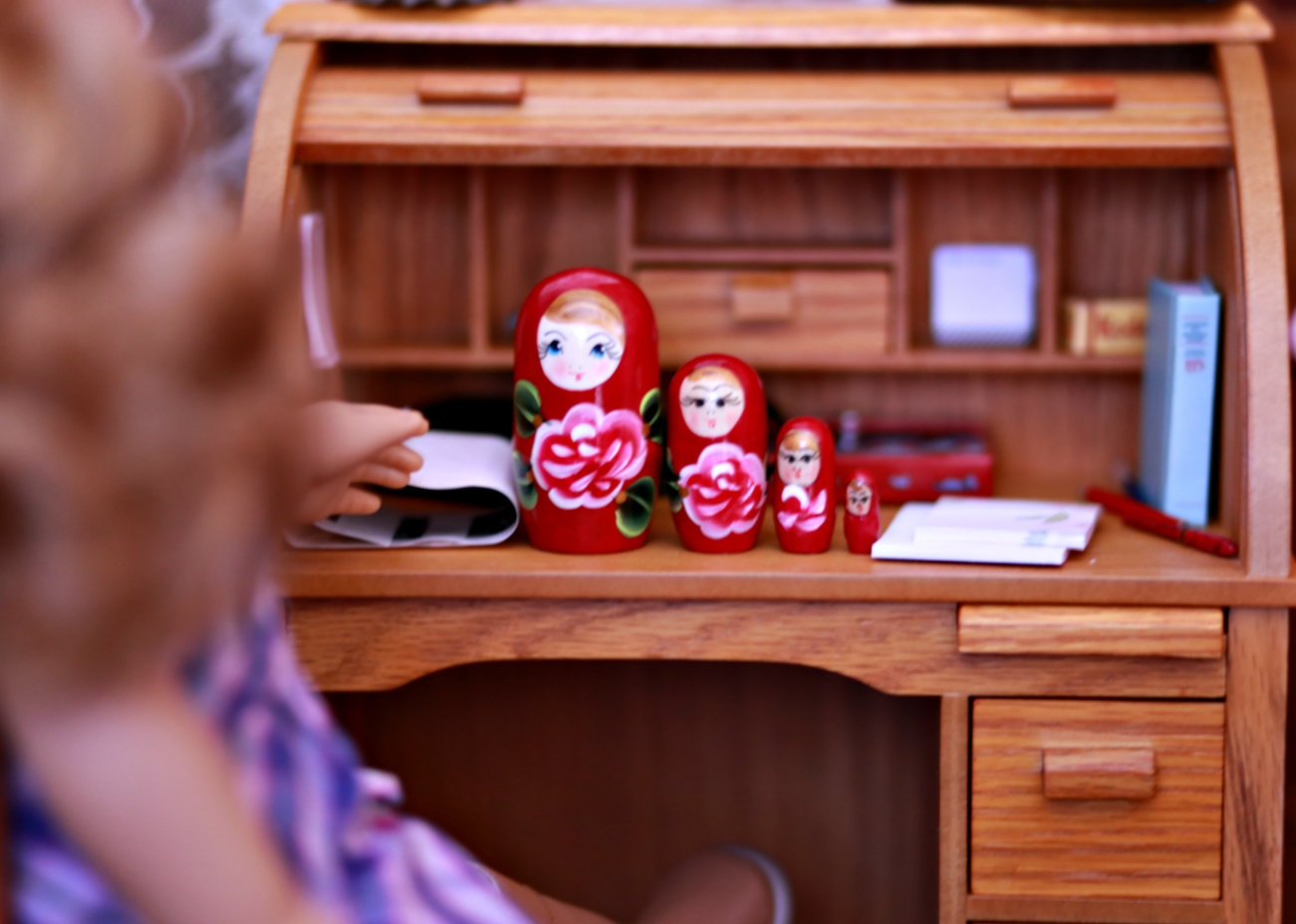 I keep my doll up here too. And I also have a nesting doll! It’s not old, unfortunately. But I think it looks so cool.