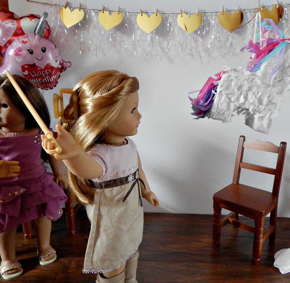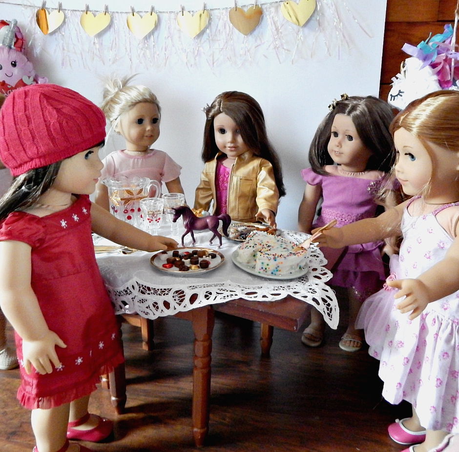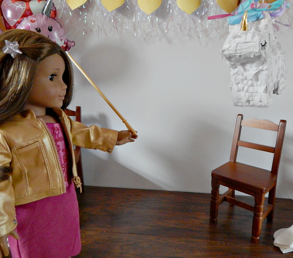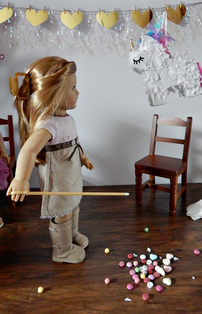 Everyone was starving, so first we ate. We had chocolate covered pretzel sticks covered in rainbow sprinkles, a unicorn cake, and several different kinds of candy. That was a lot of sweets! We also had lemonade. My mom says we need to be sure to brush our teeth tonight after this party.