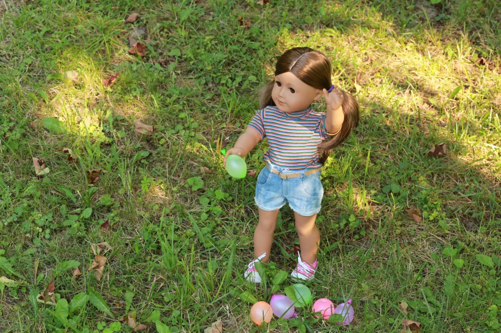 Our friend, Natasha. She is a Russian girl who’s second language is English and she loves to dance ballet. She is going to be a ballerina when she grows up.Sis is bringing the balloons!While me and Alessandra discussed (argued) about where we should actually have the balloon fight, Tasha snuck a balloon out of the washtub and threw it at me!IN MY FACE!! And the fight was on!HEY!! What’s with all the balloons?! We only got four each! Hog!!While she was busy attacking Natasha, I snuck in and stole her balloons. Ha!And we chased her through the yard! Later, we built a campfire and roasted marshmallows for smores. It was a fun way to end the day. (By the way, I built the campfire all be myself. ) With Dad’s supervision, of course. 😉